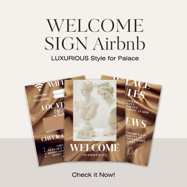 Welcome Sign for Airbnb Hosts,Palace Airbnb, Luxurious Airbnb, Vacation Rental Printable, Guest Arrival Poster,House Rules, Wifi